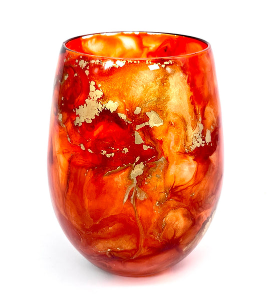 Orange and Gold Resin Art Stemless Wine Glass Set of Two Customize 20 Ounce