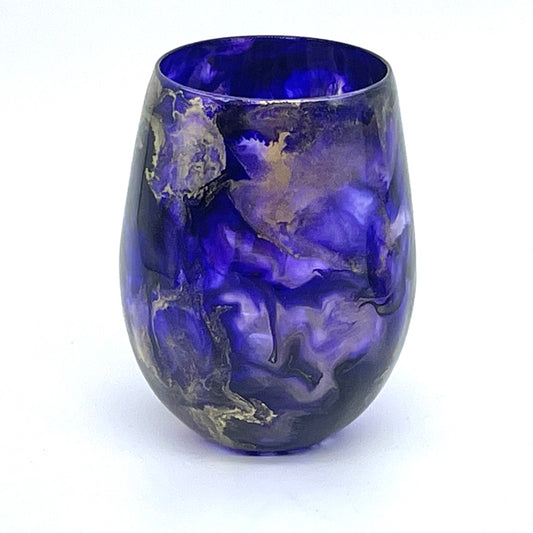 Navy Blue and Gold Jewel toned Resin Art Stemless Wine Glass Set of Two or Single 20 Ounce