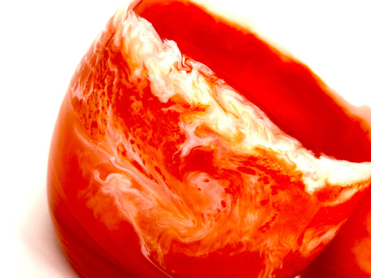 Fire Orange Resin and Cut Glass Decorative Bowl