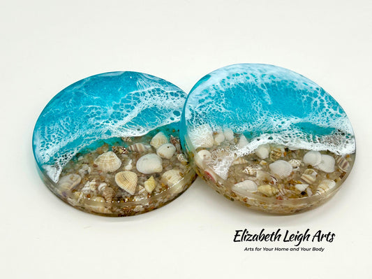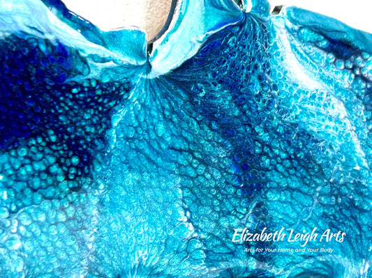 Ocean Turquoise and Green Swirled Resin and Crushed Shell Decorative Bowl