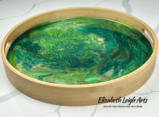 Ocean Green Swirled Resin and Crushed Shell Decorative Bowl Best Seller