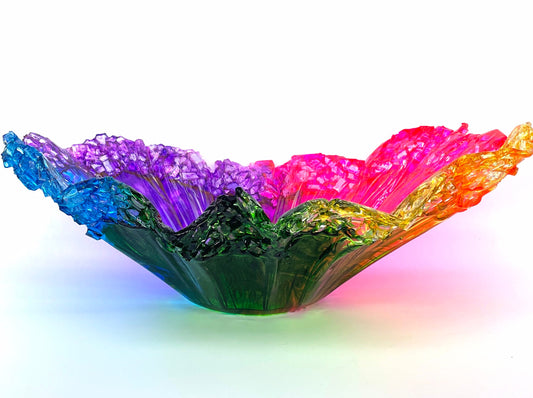 Rainbow Resin and Crushed Glass Decorative Bowl Custom