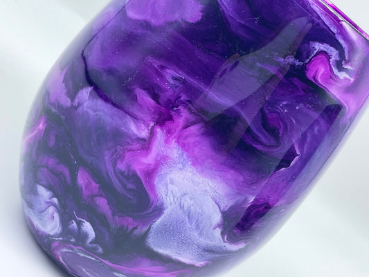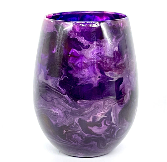 Purple Resin Art Stemless Wine Glass Set of Two Customize 20 Ounce